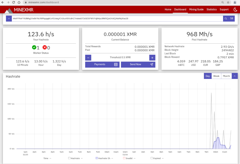 Minexmr.com Dashboard