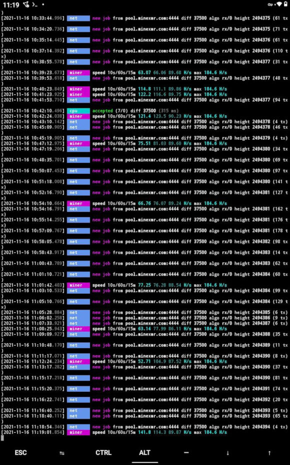Mining Monero on Adroid Lenovo Tab M10 HD in Termux with minexmr.com