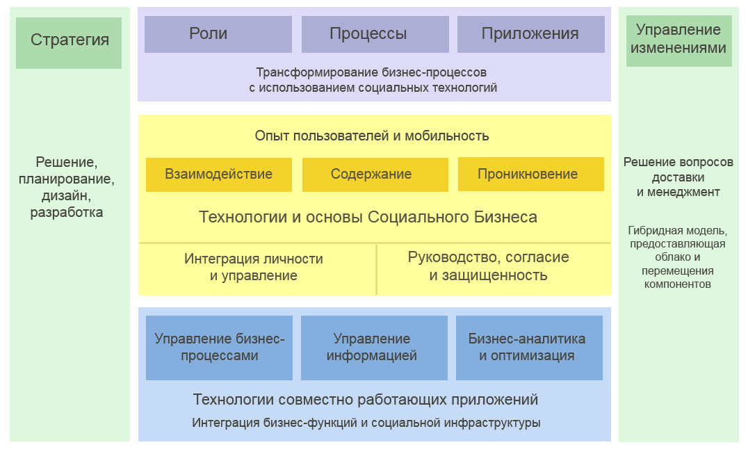 Социальный бизнес ускоряет общение и сотрудничество между сетями сотрудников, клиентов и партнеров. Предприятия могут использовать социальные данные для сбора информации и обмена опытом, что делает специальные процессы более эффективными и прозрачными Социальный бизнес дает новое понимание бизнеса на основе анализа социальных данных для лучшего понимания бизнес-ситуаций и процесс принятия решений.