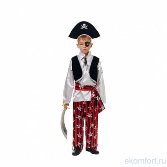 Для мальчиков довольно интересным вариантом будет костюм пирата, который изготовить чрезвычайно просто. Возьмите потертые старые джинсы, обрежьте их и сделайте обрезанные края неровными. Сверху на джинсы пришейте яркие и разные по размерам латки. Вместо пиратской жилетки подойдет обрезанный старый свитер. Кроме того, завершающим моментом создания костюма пирата станет яркий платок, ножи, пистолеты, длинный пояс и косынка-бандана, которой обматывают голову юного корсара. Пряжку для ботинок и серьгу делают из картона и фольги. Пряжку следует прикрепить с помощью резинки к ботинкам. Можно в дополнение к костюму сделать карту, на которой изображено место хранения сокровищ. Чтобы придать ей натуральный вид, печатный лист бумаги окуните в холодный чай, подержите несколько минут. Затем дайте стечь жидкости и высушите. Нарисовав подробную карту, сверните ее в трубочку и перевяжите красной ленточкой. И самый последний штрих – не забудьте о черной повязке на глаз.