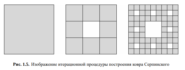 Ковёр Серпинского - это канторовское множество на плоскости, так как здесь рекурсивно уменьшается длина стороны квадрата.